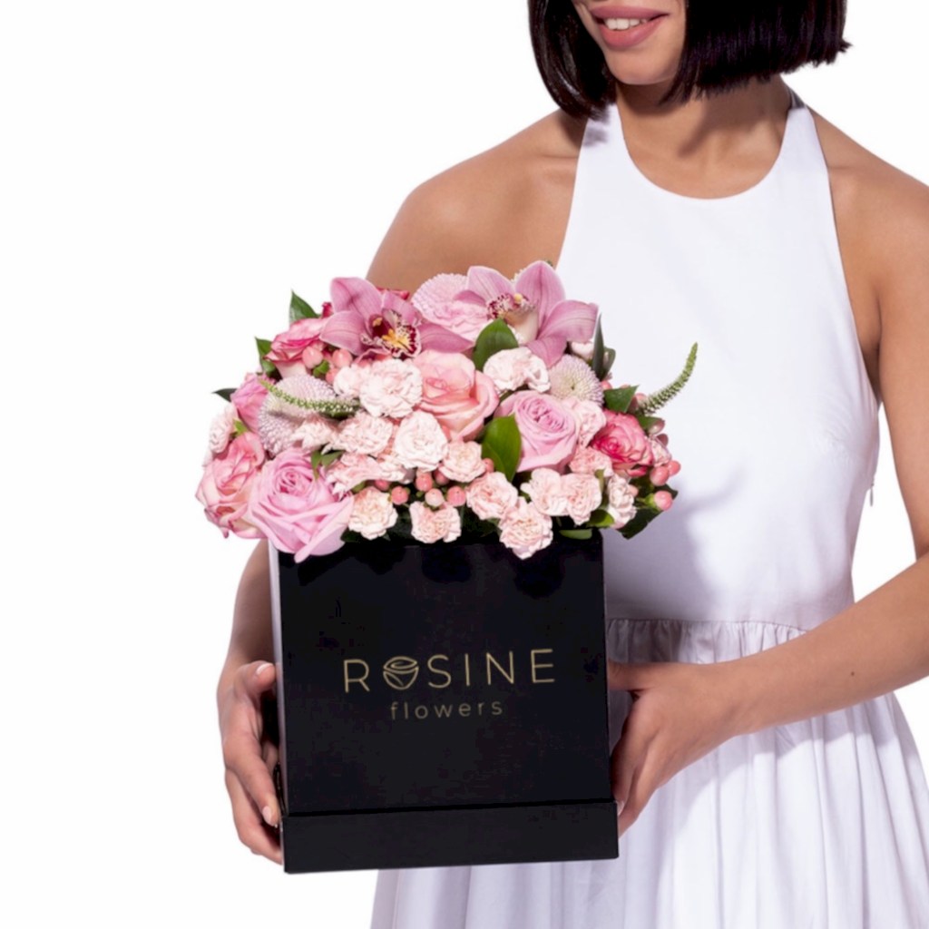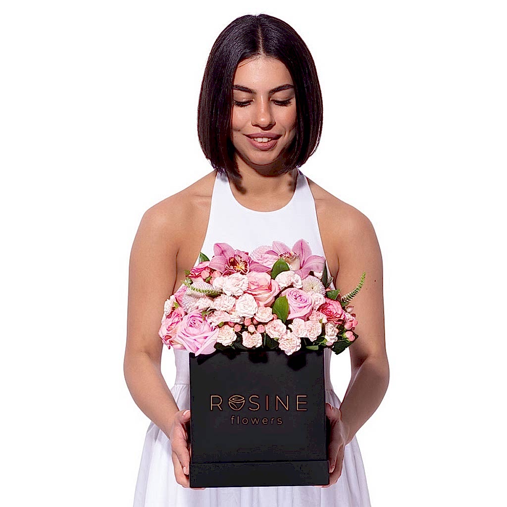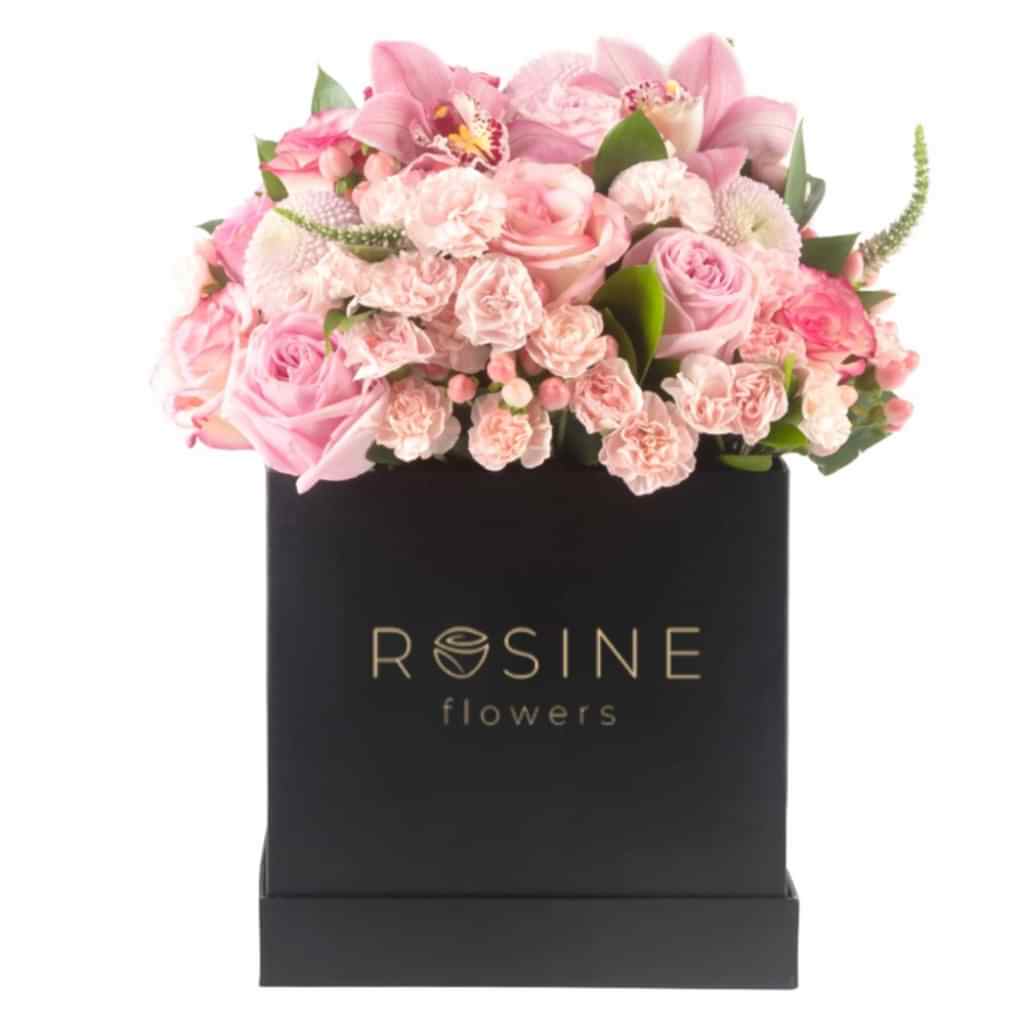Kare siyah renk bir kutu; içindeyse pembe tonlarda bir dolu çiçek düşünün… Bu öyle bir kutu ki içinde pembe gül, veronica, cymbidium, hypericum, karanfil ve anastasia bulunuyor. Pembenin tatlı tonlarından oluşan bu aranjman sizlere masalsı bir dünya sunuyor. Siz de özgü hislerinizi karşı tarafa iletmek istiyorsanız tercihiniz kesinlikle Chloe olmalı…